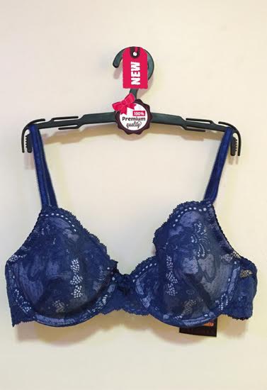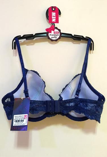 This About U Romantic Blue Net Lace Underwired T- Shirt Bra is the epitome of sexy. Unlined to show off your natural shape with the perfect amount of coverage-not too much, not too little. The About U Romantic Blue Net Lace Underwired T- Shirt Bra has a wide, supportive see through back band and soft-backed adjustable straps that stay in place. The cups are full coverage but have a semi-sheer top panel for sensual appeal. An elegant net lace embroidery design covers the cups and back band of this lovely bra. The About U Romantic Blue Net Lace Underwired T- Shirt Bra looks great on women of all sizes, and is especially flattering for women who need extra support at the sides of the bust.Reasons to Buy Navy Blue Lace T- Shirt Bra