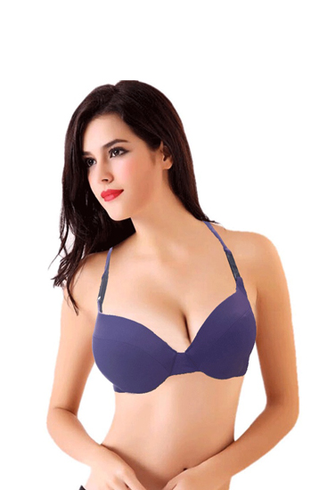 The Ann Christine Violet Plain Padded Wired Halter Bra will quickly become your favorite bra. The sleek shape of this seamless t-shirt bra will hug your curves for a smooth shape under clothing, perfect for every day wear. Lightly padded cups offer modesty and extra comfort. Silky, breathable fabric plus seamless underwire support provides lift and Separation. Lightly padded, thin halter straps won't slip or dig into your shoulders and minimize bounce. Wide back offers extra support, while strong back clip makes it easy to find your most comfortable fit. It is made of polyester and elastane fabrics, 34B size bra, available in violet color.- Soft Comfy and breathable fabric bra