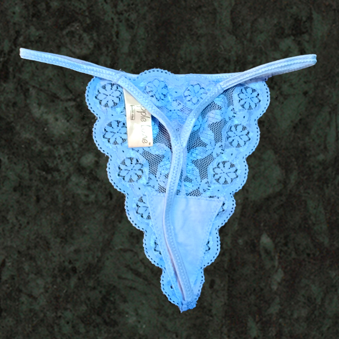 If your love of g-string then you'll want the Apple Lane Peachy Blue Scalloped Lace G-String. The breathable material will help keep you cool and dry. The thin soft waistband allows the women's panties to be nearly invisible under clothes.- Made by nylon material