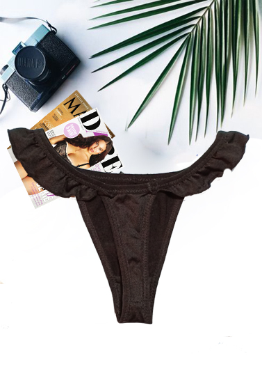 Black Embellished Ruffle Thong