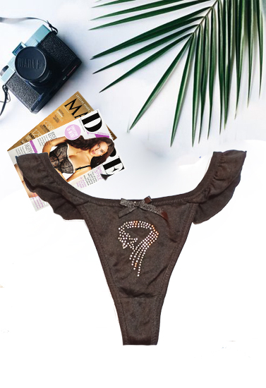 The Black Embellished Ruffle Thong is a simple thong good that works under all your clothing. This low-rise style has a sexy thong back. A decorative silver beads and ruffle charm complete the look! Match this panty to any black bra. You don’t have to dress to impress to look stylish and cute. The elastane feels great on your skin and will help prevent chaffing caused by abrasive fabrics. The thong cut goes undetected in figure hugging skirts or pants so you can wear what you want with confidence. Made with a ruffle elastic waistband and a tagless inner for added comfort and security. The soft material is colorful and vibrant with all-over prints. Available in same color and print, these panties will make a great addition to your panty collection.
