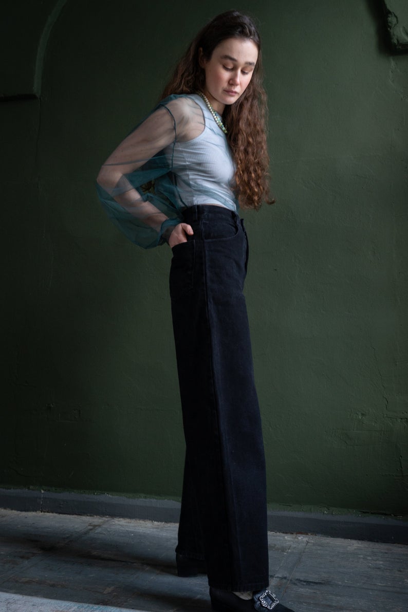 Black high waisted jeans. High rise jeans with a straight leg Also available in Gray, Dark Blue, Medium Blue, Light Blue, and White denim. Made 100% cotton denim Length 110 cmBased on 0 reviews