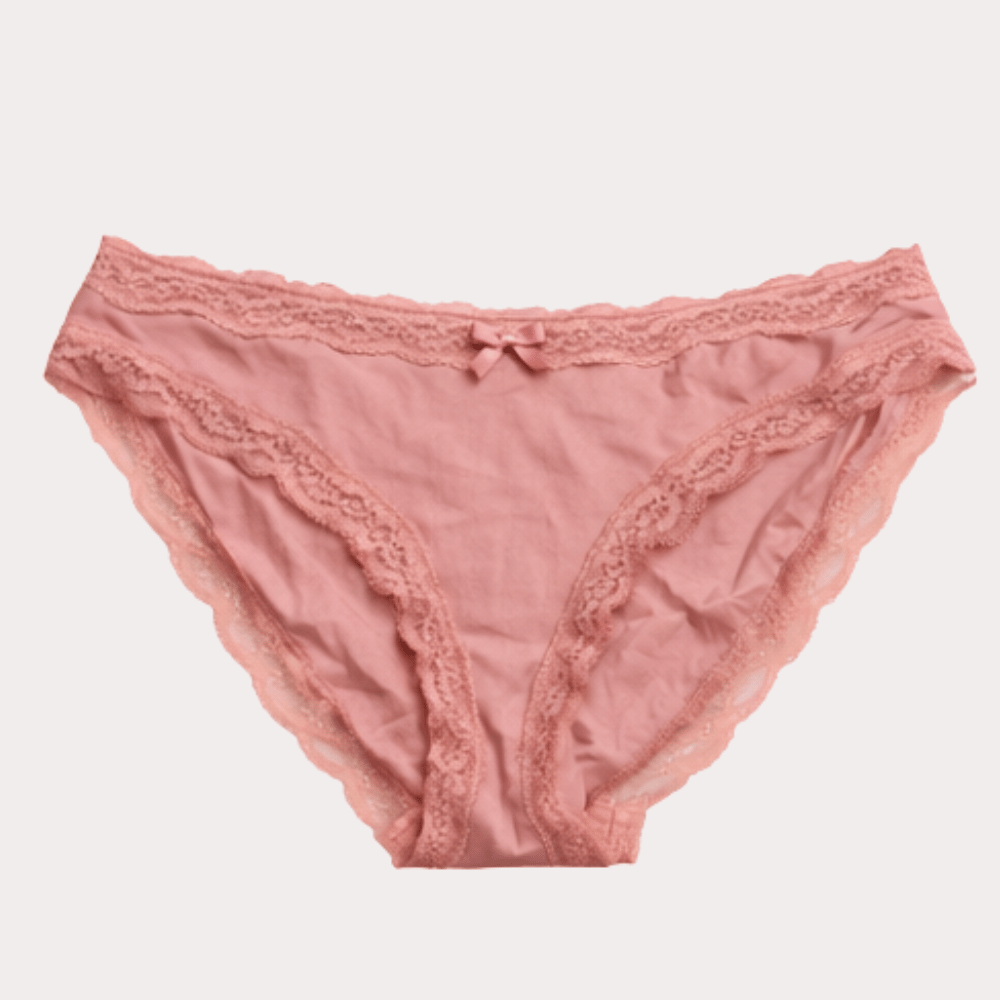 Elegant blush pink lace panty featuring soft breathable fabric, delicate lace trim, and a charming bow detail for comfortable everyday wear.