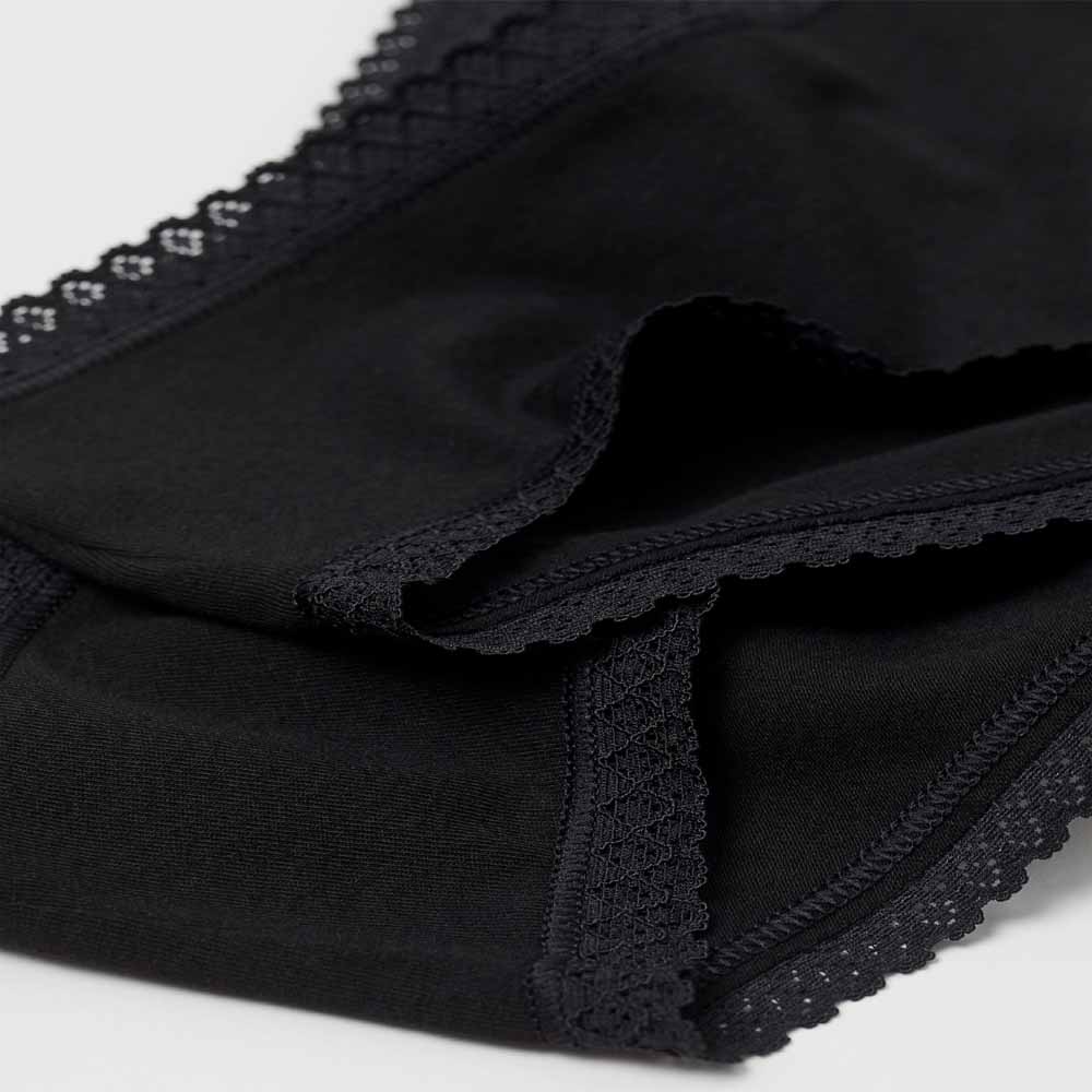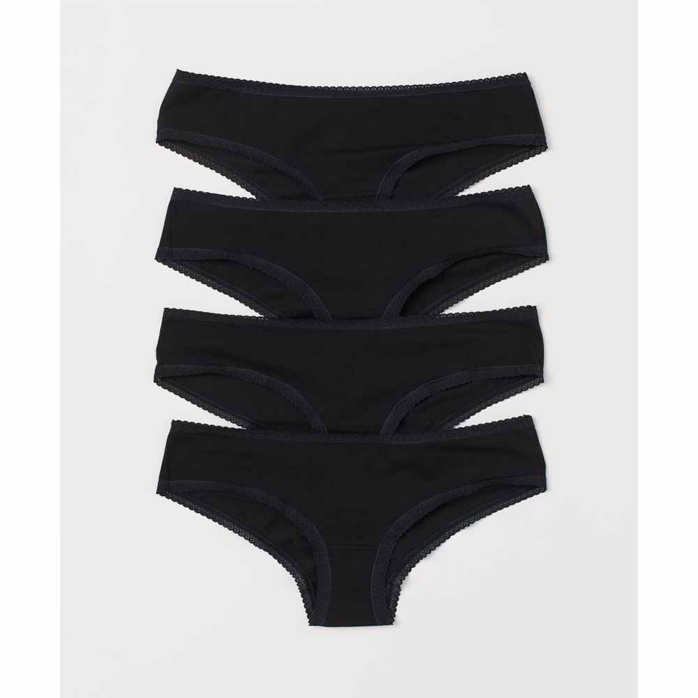 Play up your girly side in a pretty black panty with the Bpc Pack of 4 Black Cotton hipster briefs. This hipster features a mid-rise cut with good back coverage. The front of the panty has a smooth front and back. You love the pretty bow at the front side. Match this panty to the black lace bra. You'll love the sexy feeling you get when you pull on this lace hipster. These low-rise, yet moderately cut panties are comfortable to wear all day long. The brushed elastic waistband provides a great fit . This thong is adored for its smooth style and lace details. The cotton feels great on your skin and will help prevent chaffing caused by abrasive fabrics. The thong cut goes undetected in figure hugging skirts or pants so you can wear what you want with confidence. Made with a covered elastic waistband inner for added comfort and security.Important Features