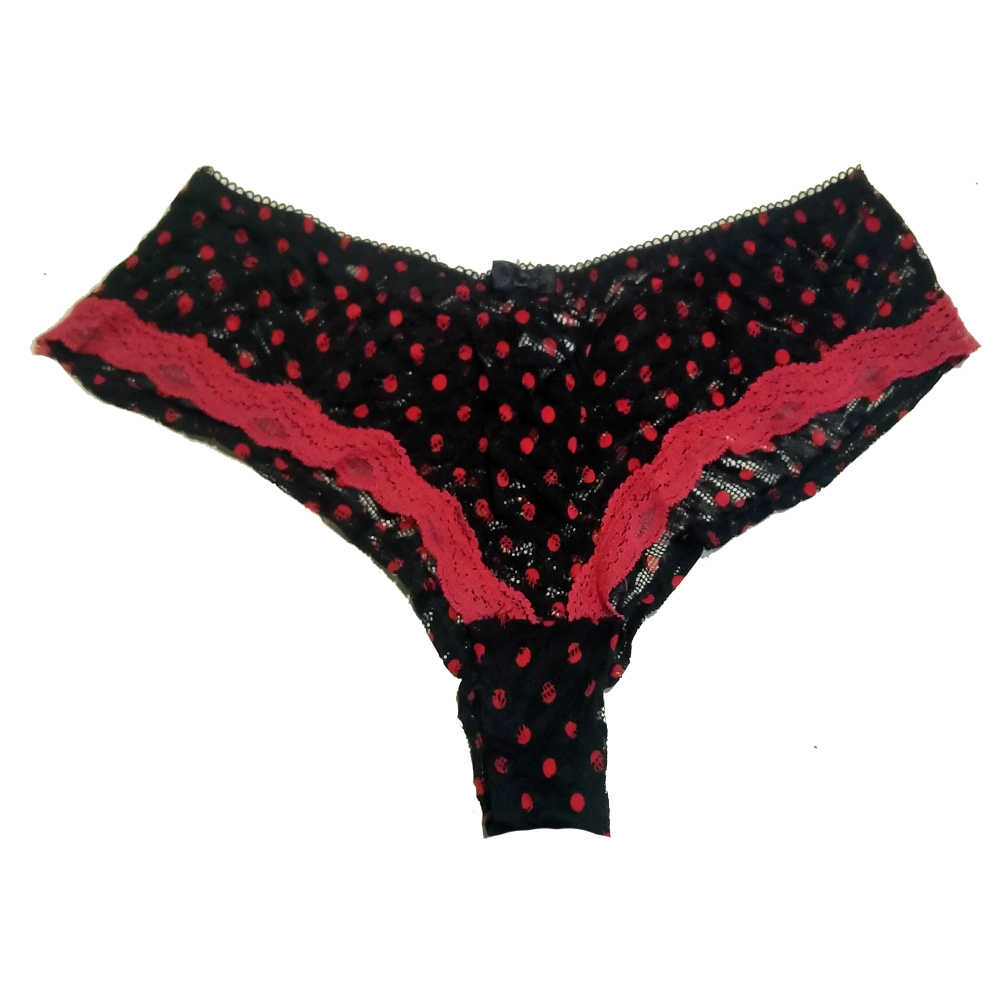 Carla's Secret Lingerie Red Dotted Black Mesh Full Visible Lacy Hipster Panty