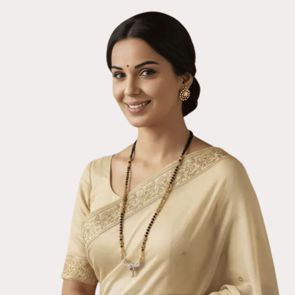 A timeless everyday essential, this long mangalsutra features traditional black beads paired with a subtle and elegant gold-toned pendant.