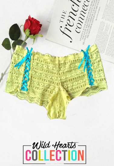 Crotchless Blue Criss Cross Lace Up Front Tie Boyshort + 1 Free Bra