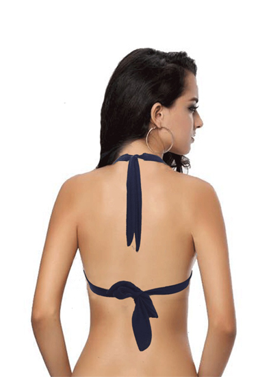 Feel confident and comfortable in this Dark Blue Color Halter Beach Bikini Top. It keeps you looking stylish and fashionable at the pool or the beach. This halter style bikini top features slots to remove cups and straps tie around your neck and back, halter-style, to create a completely different look. Made of polyamide and elastane for long wear. You can coordinate this piece with your favorite bikini bottoms for endless possible combinations.- Tie Halter Neck