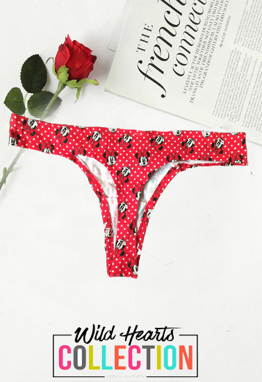 Disney Minnie Mouse Cartoon Print Cotton Thong In Red + 1 Free Bra