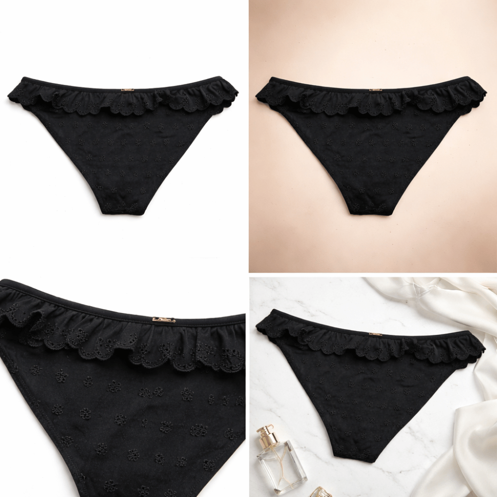 Elegant Black Frill Lace Cotton Panty with Embroidered Detail
