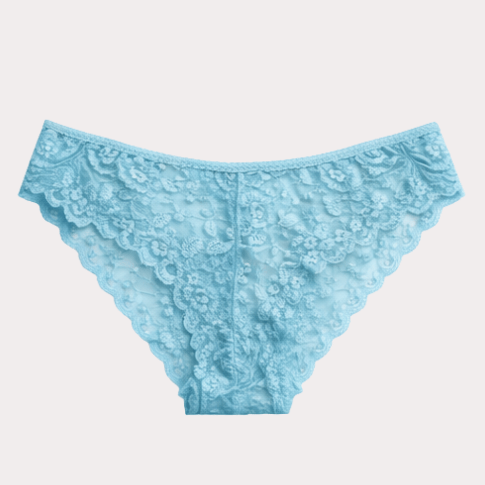 Soft sky blue lace panty featuring delicate floral lace fabric and scalloped edges for a feminine and comfortable fit.