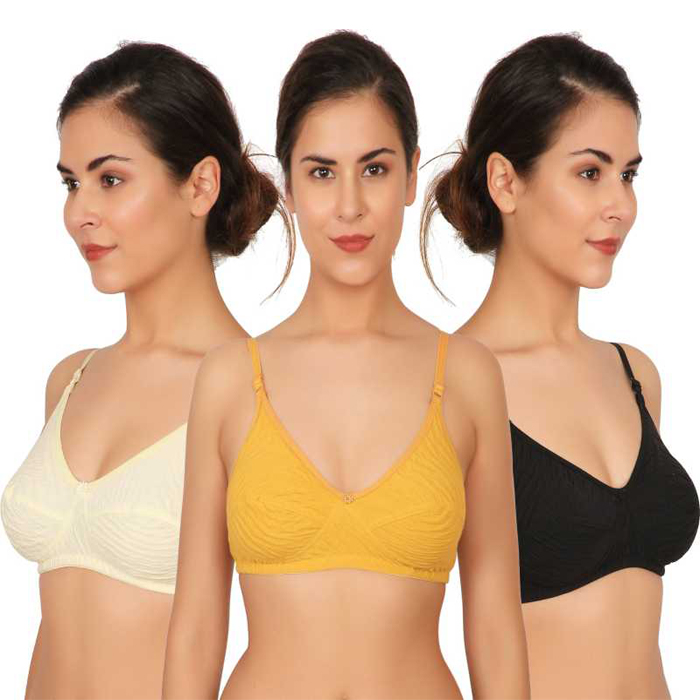 Get comfortable wire-free support with Everyday Smooth Wirefree Cotton Bra Lot 3. Soft cotton rich fabric keeps you comfortable and fresh in all seasons.These classic coverage bras have no wire, which fit beautifully under t-shirts as well as Indian ethnic wear. The straps with soft undersides are well-aligned towards the center of cup to provide better balance to the bust. Adjustable straps allow to adjust the fitting of bra and back hook-eye closure keeps bra in right place. These bras are further complimented by reinforced seams at under bust as well as broad side wings for better support and comfort. This smooth look wirefree bra provides support with smoothing results.Based on 0 reviews