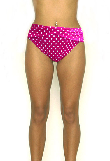 Enjoy the sun, sand and surf like a true pinup in the F&F Pink Polka Dot High Rise Plus Size Bikini Brief . With a high-rise cut and full back coverage, this bikini bottom offers the perfect amount of coverage for a plump shape. A feminine polka dot print splashes across the style all over for retro flair, making it a must-have summer staple. Every gal who likes her swimsuits classic and cute loves this brief! Pair the bottom with the matching halter bra and top for a fab throwback ensemble!