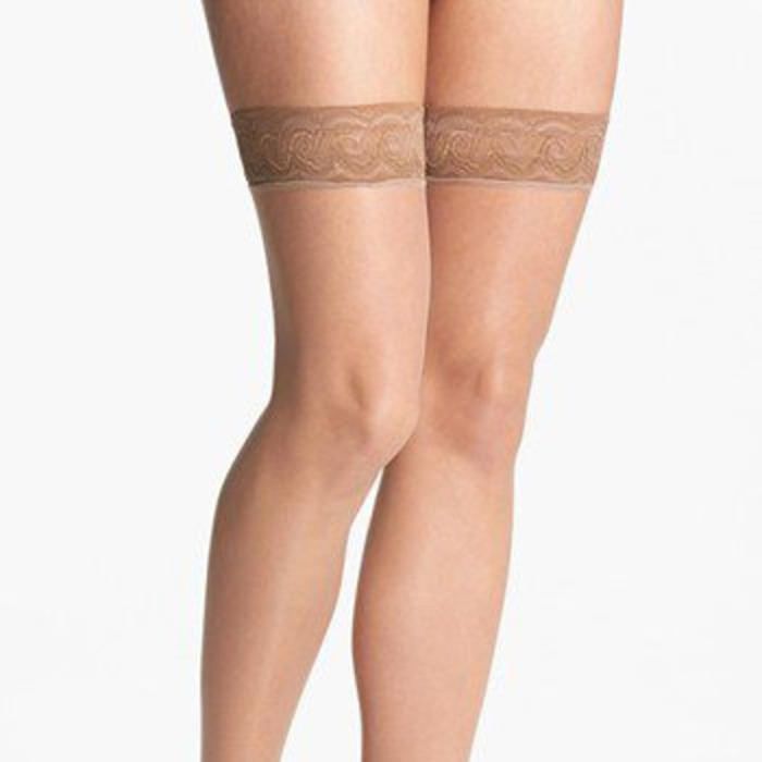 Add a flirty touch to your wardrobe with the GIVENCHY Creme Thigh High's Stockings. The sheer control stockings stays in place and does not slip or fall.- Made by nylon material
