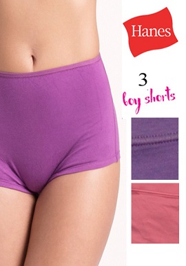 Classic style boy briefs made for a woman..Hanes brings to you, 3 Piece cotton briefs,Ultra-soft cotton-spandex knit stretches with you as you move. Hanes Organic Cotton 3 Piece Boyshorts Set;for a smooth and comfortable essential pick up these comfort short and provides maximum rear coverage. Girls rock the boyshort ,which are ideal for super soft everyday wear and are undeniably unique in comfort and fit Why To Invest In Boyshort????- Mid-rise boyshort brief