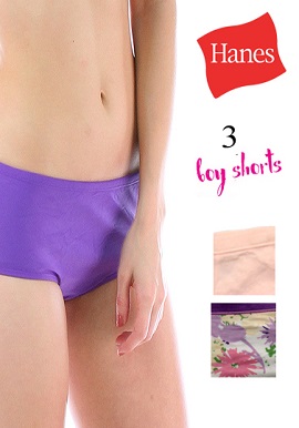 Classic style boy briefs made for a woman..Hanes brings to you, pack of 3 cotton rich briefs,Ultra-soft cotton-spandex knit stretches with you as you move. Hanes - Rich Cotton Boyshorts Set Of Three;for a smooth and comfortable essential pick up these comfort short and provides maximum rear coverage. Girls rock the boyshort ,which are ideal for super soft everyday wear and are undeniably unique in comfort and fit. Why To Invest In Boyshort????- Mid-rise boyshort brief