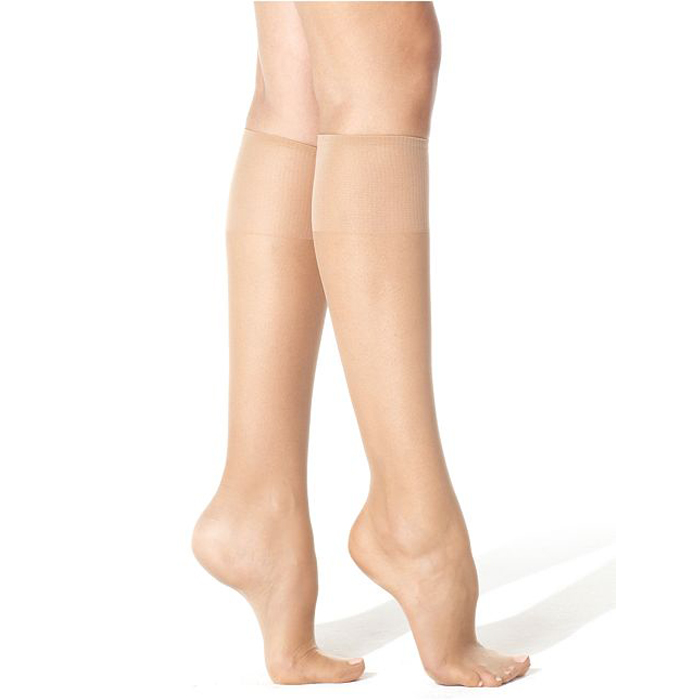 This Hanes Silk Reflections Silky Sheer Knee Highs 2-Pack, provides the sheer styling of hosiery with the relaxed feel of a sock.- Made by nylon and spandex