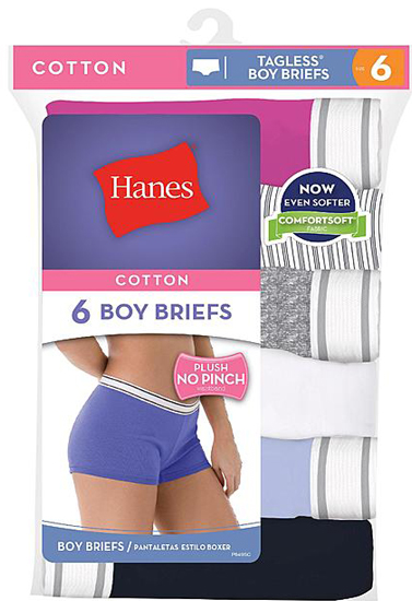 Enjoy long-lasting comfort and style with these Hanes Unisex Cotton Stretch Boyshort 6 Pair Pack. Built for ultimate comfort, these panties have a flat, covered waistband and leg bands so no elastic rubs against your skin and uncomfortable irritation is eliminated. These bands help give you the perfect fit without sacrificing comfort. These Cotton Stretch panties move as you do and fit to your shape. The mid waist silhouette sits right under your natural waist and has leg holes cut higher towards the hips. As always, these unisex panties are tag free and made with a 100% cotton liner for extra comfort. With assorted fashion prints and colors, theirs always a pair to match your outfit and mood.- Made by cotton and elastane material