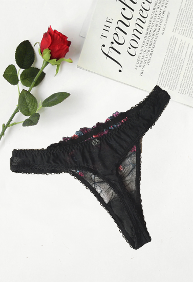 Add some flirty, skimpy fun to your underwear collection with this High End Colorful Embroidery Lace Thong. The soft polyester blended fabric paired with the sexy lace trim will have you feeling comfortable and sexy all day long. The thong cut provides minimal coverage in the back but sits right on your waistline with a covered elastic band for added comfort. The super soft lace lays flush against your skin so that they go undetected in fitted jeans and skirts. It has beautiful colorful thread embroidery at front and sure you will love this, it attracts a lot and gives you sexy and beautiful look. Available in same color and print for more ways to bring out your sexy style.Important Features