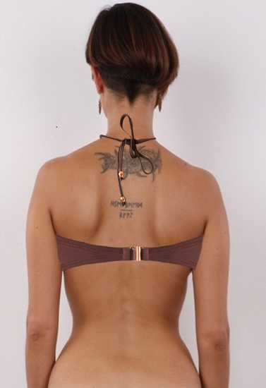 - Tie at halter neck knot and back metal clip