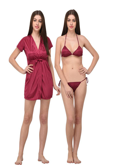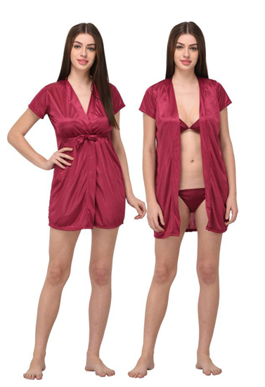 ✓Brand : Snazzy ✓Robe Size : Free Size ✓Brief Size :S,M,L,XL ✓Material : Crepe ✓SKU :  HRWTPF61 ✓Colour : Maroom ✓Disclaimer : Product color may slightly vary due to photographic lighting sources or your monitor settings Snazzyway Assured