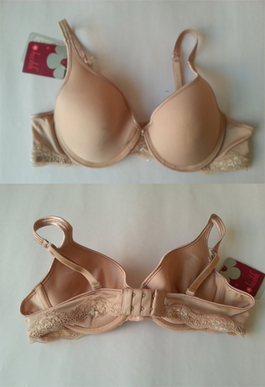 Enjoy cleavage-enhancing lift and feminine lace accents in this Hushh Beige Lace Trim Underwired Push-Up Bra! Made of polyamide and elastane. Contour/t-shirt, underwire cup shapes and supports the breasts with firm, heavy graduated, crescent-shaped padding along bottom and sides of cup for youthful uplift. Silky adjustable straps can customize from back. Center panel - triangle with lace trim and arched underside for high tummy comfort. Sides and back have sewn-on elastic at bottom edge with lace trim. Wide-set elastic straps have picot edging and adjust in the back with plastic hardware. Back coated metal hook-and-eye closure.- Padded cups lift from the bottom to provide a natural shape