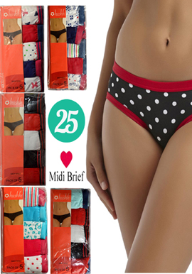 Hushh-Women's Cotton Midi Brief Wholesale Lot of 25 is available in multi color. 25 Midi Brief  Panties are available in the box.