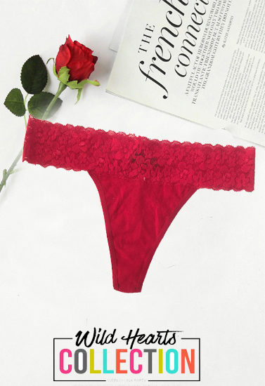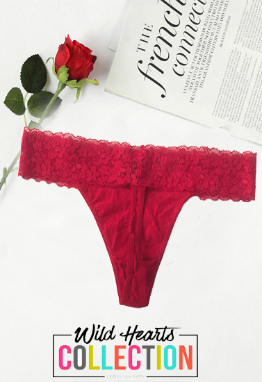 The La Senza Red V-Cut Lace Thong is so comfy women who swore they would never wear a thong became thong lovers overnight. The cotton blend feels great on your bottom and helps prevent chaffing and the lace trim adds personality and flare to the panties. The thong cut covers your minimize backside and sits right on your waistline with a covered elastic band for added comfort. The soft silky material lays flush against your skin so that they go undetected in fitted jeans and skirts. The V-curved waistband on this thong creates a flawless silhouette because it lies completely flat along your waist.- Made by polyamide and elastane material