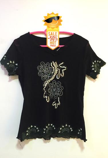 Pull together a chic and trendy look with this Ladies Front Embellished Embroidery Sequins Beads Black Top. The beautiful prints add to your feminine charm, the style gives your overall look a great definition. This beautiful creation will give you a fashionable look when wear with matching jeans or jeggings. Pair it up and you are sorted for the day. It's great for the summer time. Soft and lightweight material made from Rayon and spandex.Reasons to Buy Ladies Front Embellished Embroidery Sequins Beads Black Top