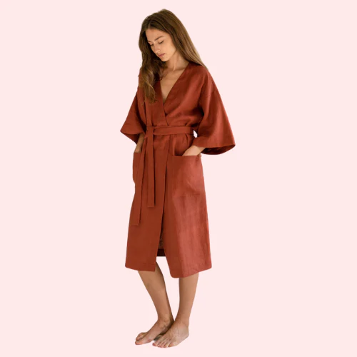 Enjoy this soft and comfortable sleeveless robe made from the best organic cotton. It's perfect for relaxing in the morning or evening. The simple design has a waist tie and deep pockets, adding a touch of style. Made ethically and hypoallergenic, this robe is gentle on your skin and good for the environment. Experience the perfect mix of luxury and eco-friendliness with our organic cotton sleeveless robe.