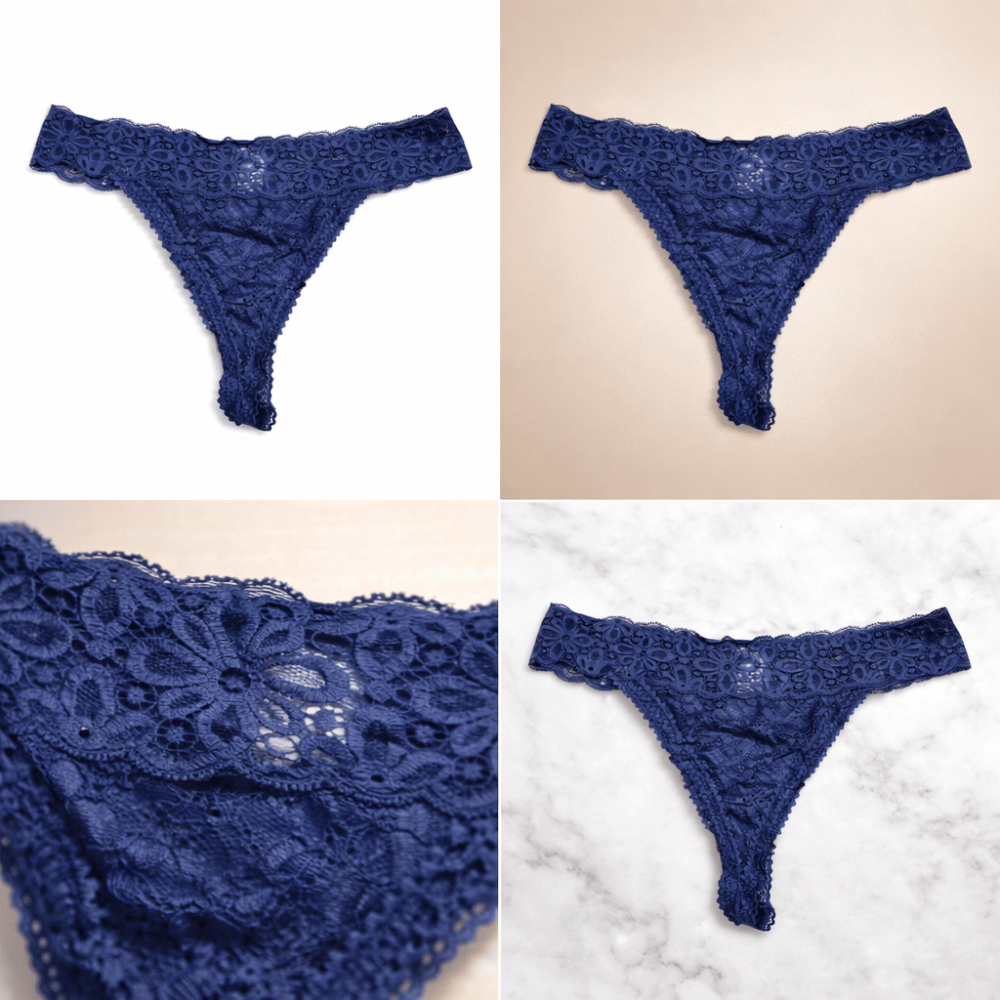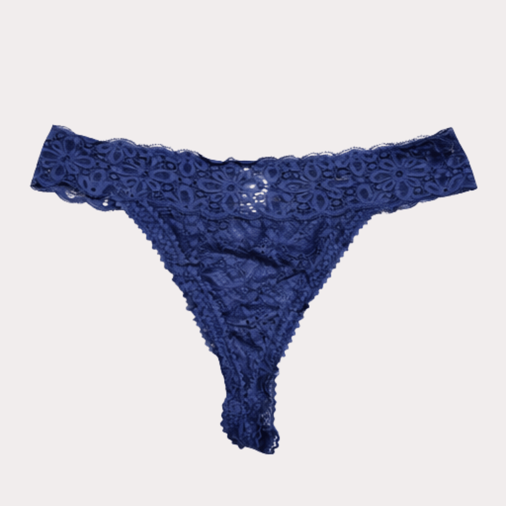 Midnight Blue Floral Lace Thong Panty – Soft Stretch Elegant Fit