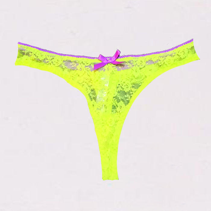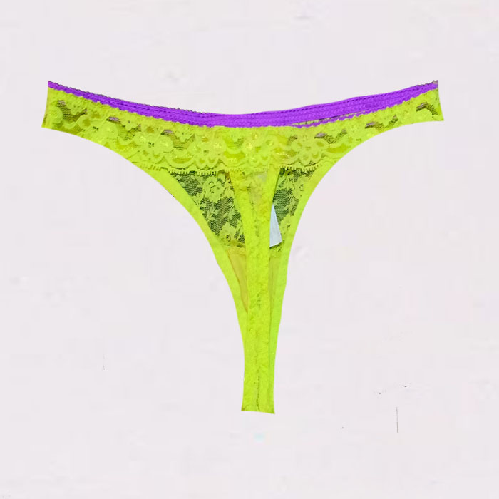 Soft elastane waist lace thong which provides all day comfort and excellent fit, with sexy minimal coverage is Neon Green Rose Sheer Net Lace Thong Panty.- Made by nylon and elastane material