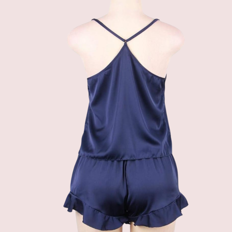 Our Plus Size Cami Top and Shorts Nightwear Set, designed for comfort and style. This set features a soft, breathable fabric that feels great against your skin. The cami top comes with adjustable straps for a perfect fit, while the matching shorts have an elastic waistband for added comfort. Perfect for a cozy night in or lounging around the house, this nightwear set combines practicality with elegance.