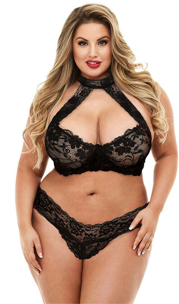 Enchantingly express your erotic side and showcase your seductive spirit with this delicately delicious sexy Plus size seductive black lace bra set , this sexy set is great if you are in search for high quality and sexy womens lingerie.