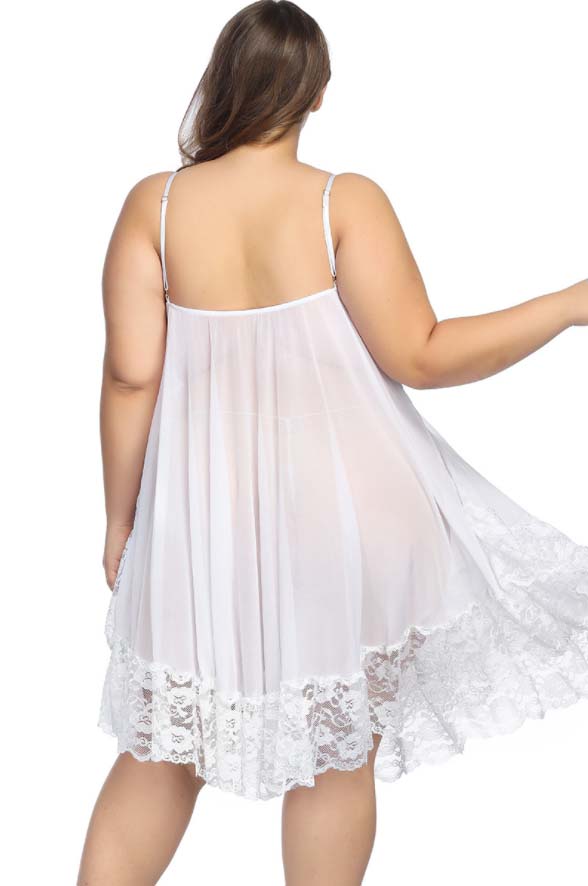 Plus size white see through babydoll nightwear