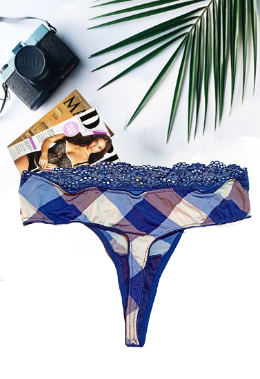 No matter how you move, this Printed Check Blue Color Thong Panty move right with you. It is made by polyamide and elastane material. The comfort soft elastic lace waistband stretches when you do, for freedom at every turn. as we see it has stylish tartan check print details, so it looks stunning to wear. Smoothing stretch-elastane fabric provides a flawless feel-good fit and the tagless design eliminates a scratchy label for increased comfort. The cute thong cut combines a low-rise waist with non-binding fabric covered brief-style legs for minimal coverage that stays in place.- Made by polyamide and elastane material