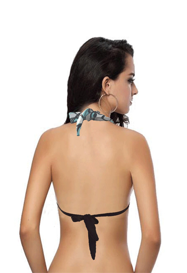Rae Stunning Printed Plus Size Halter Bra has beautiful print design over the cups and halter strap. Its classy design offers style, comfort and secure support. This lovely bra is constructed of a flexible nylon and elastane to give maximum support throughout your daily activities even stay securely in place while you're in the water. Wire free padded cups for perfect shape. Brown under band is made of elastane, gives light support. Halter strap ties easily and sits comfortably behind neck. It has plunging v-neckline pairs well with low-cut tops. Tie back knot with soft-backing, which makes it metal hardware free bra.- 82% Nylon, 18% Elastane