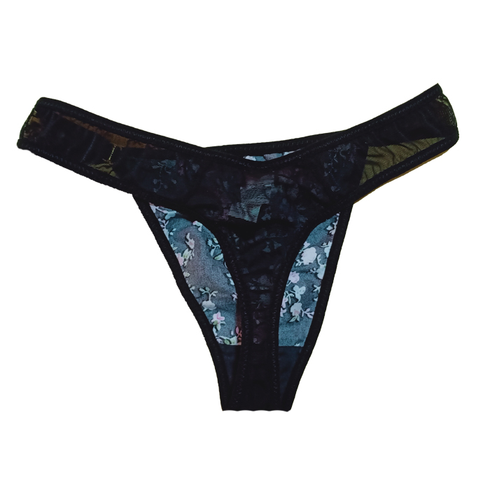 Screwball Lady's Black Floral Print Bikini Bottom