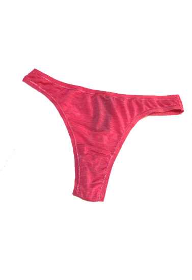 This pink thong is comfy enough to be an everyday favorite and naturally sexy in silky-soft fabric trimmed. The poly/elastane blend material feels great on your bottom and helps prevent chaffing. The thong cut moderately covers your backside and sits right on your waistline with a covered elastic band for added comfort. The super soft fabric lays flush against your skin so that they go undetected in fitted jeans and skirts.