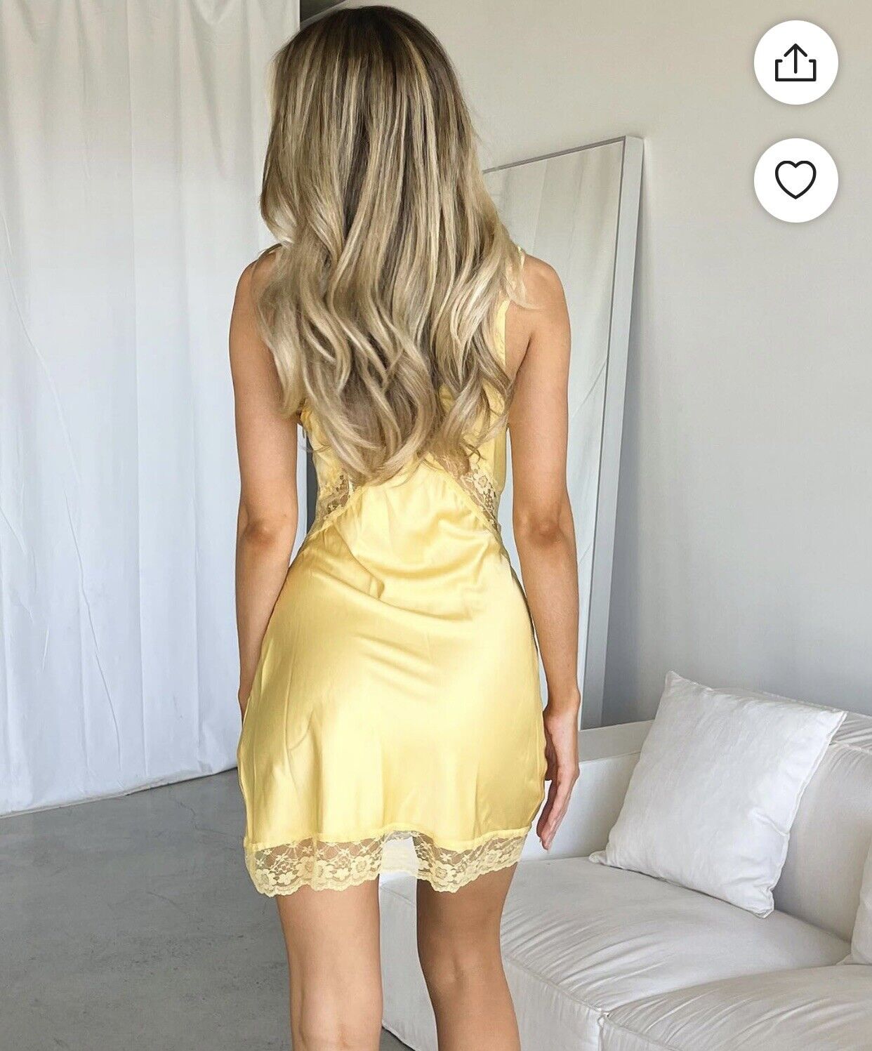 Silk Satin Slip Yellow Lace Trim Dress