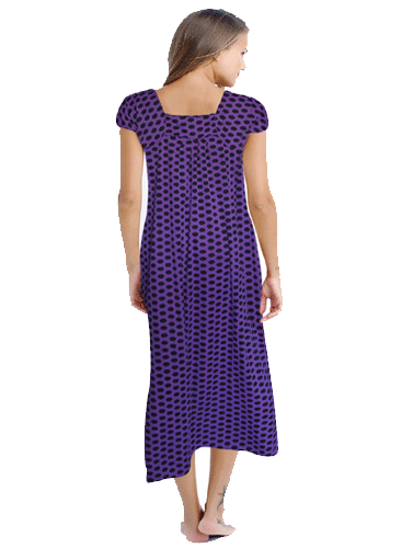 Snazzyway Black Polka Dot Print Full Length Nighty it is very attractive excellent quality soft cotton nightgown, with it's purple base and black polka dot print all over by Snazzyway.com is worth investing in.Tailored in regular fit from breathable cotton fabric, it will keep you relaxed all night long.