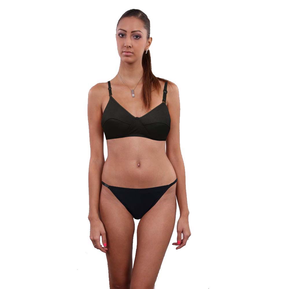pure organic cotton black bra and thong set