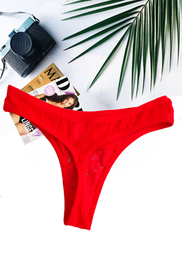 It's game time all the time with the Splash Red Lace Thong. They're made of soft, nylon-rich fabric with a hint of lycra for the perfect amount of stretch, while the stretchy elastic waistband provides a snug, flattering fit as well as a sporty accent to your ensemble. This thong has minimal coverage for an alluring, barely-there feel, and is available in free size of styles ranging from sleek, solid colorways to classic thread floral patterns. It's a chic and comfortable addition to your everyday intimates.Features