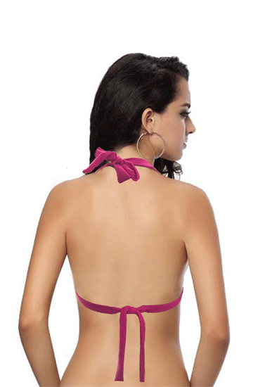 Feel confident and comfortable in this Tigoua Pink Floral Halterneck Bikini Top. Two ties hold it secure, one around the neck and the other behind the back. This bikini top has the floral print at left side. You'll love the appeal this floral color print style. The bikini top can be paired with a matching bottoms of a complementary color. It is light, durable and has a flexible mobility that comes from the polyamide and spandex used to create it. You can even add the cup of your choice that helps support you during your time spent in the water.- Halter stripe bikini top