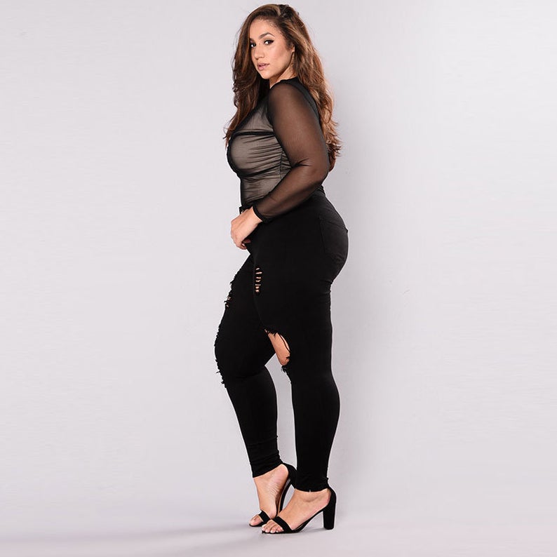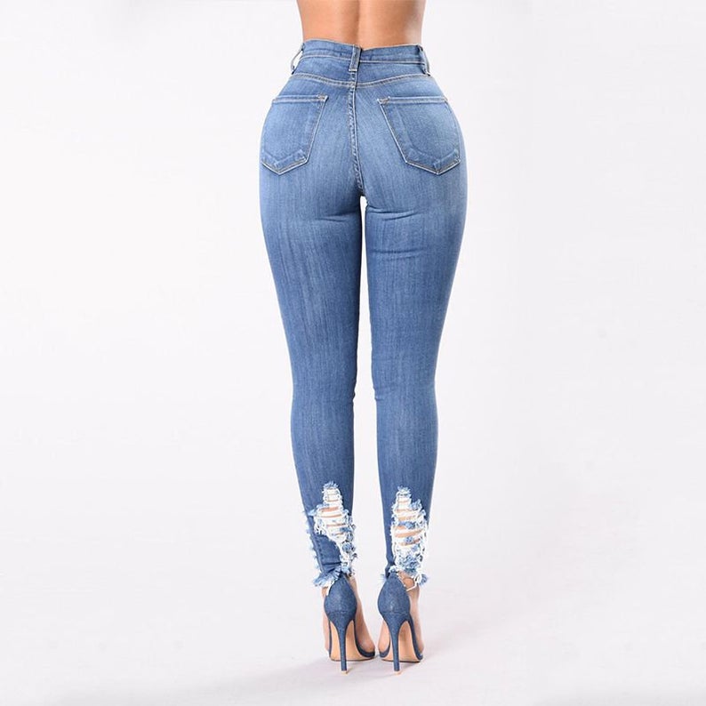 Women Fashion High Waist Solid Color Elegant Ripped Jeans Material: cotton Fast shipping 10 day guaranteeBased on 0 reviews