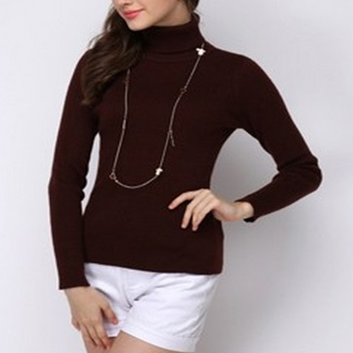 Women’s Coffee Color Knit Sweater Bottoming Shirt