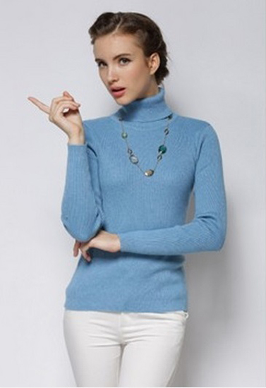 Women's Cool Stripes Lake Blue High Neck Sweater