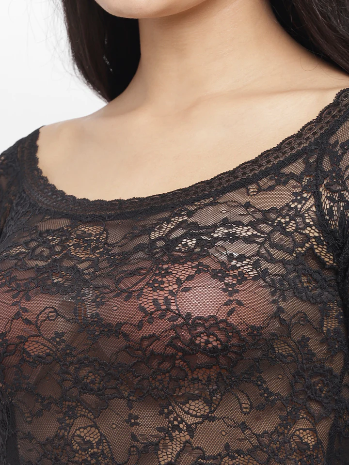 ✓SKU: WELOSLN001 ✓Fabric: Soft net /Lace ✓Size-M,L,XL & XXL ✓Color: Black ✓Seams: Double seaming ✓Style: Lacy