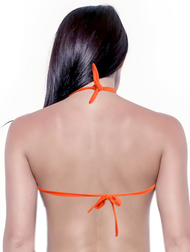 Women's Orange Soft Cotton Halterneck Bra Sexy orange bra with halter neck gives you amazing look at beach. This halter neck bra is used for beachwear, swimwear. This bra is non-padded and non-under wired hence it is comfortable, you can wear it whole day. Unique cotton-spandex allows self-tie fastenings to reverse for an adjustable fit to your breasts and give you incredible support. - Wirefree and cup free comfort - Stretchable fabric ensures comfort and ease of movement - hook fee comfort -Self-tie fastenings to reverse for an adjustable fit. -Fabric Composition: 95% Cotton, 5% ElastaneWash Care Instructions: