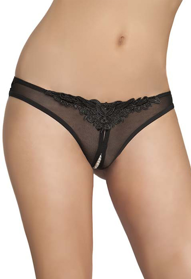 Women's Sexy Lace Open Crotch Mesh Pearl Thong Turn up the kink in this crotch less thong that features pearl details for an extra decadent touch. Women's Sexy Lace Open Crotch Mesh Pearl Thong offer cute styles and superior comfort. Made of a smooth blend of polyester and spandex, these thong panties offer 4-way stretch for all day comfort. The popular thong silhouette has a triangle shaped front panel, thin side panels and minimal coverage in back for a no-show look under clothes. The fused seams provide additional comfort and a no-panty line look under fitted jeans, leggings or skirts.Important Features